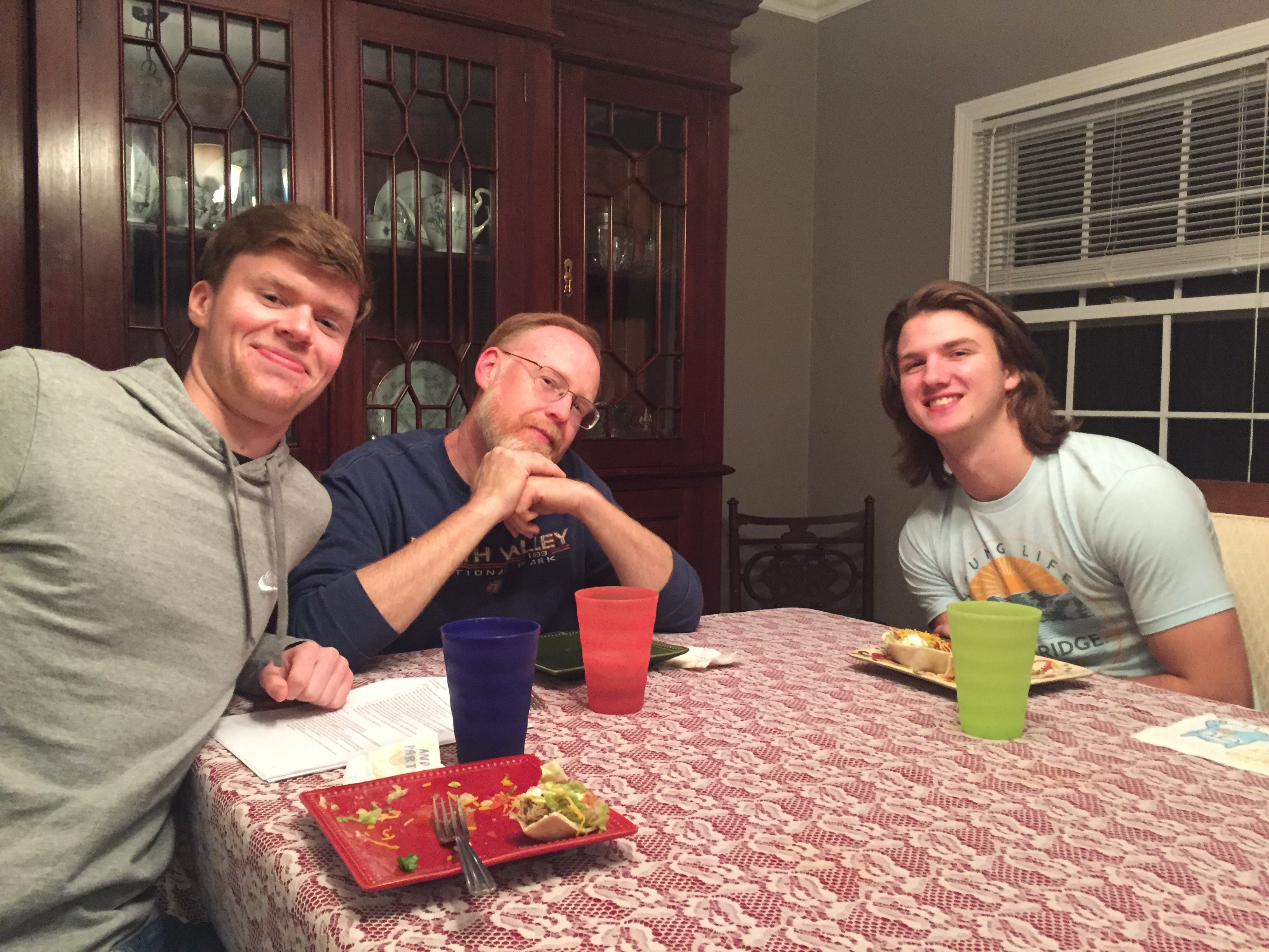 Shortly after, a call from the kitchen announced that dinner was ready and oh man was I hungry. Before me was an excellent spread of burritos, taco bowls, and any taco topping you can think of. Chris Hughes said a short prayer over the meal and the night and then his family insisted that I get my plate first because I was their guest, which I hated. It felt so weird to go before the women; growing up, my mom always hammered manners into my head, so it is second nature at this point. Evan followed me to get his plate and I got a glass of water then followed him to the kitchen table. Maddie asked if we would like some music to go along with the meal and everybody replied positively so she pulled out her iPhone, logged onto Spotify and soon authentic mariachi music was playing in the beautiful, Russellville home.