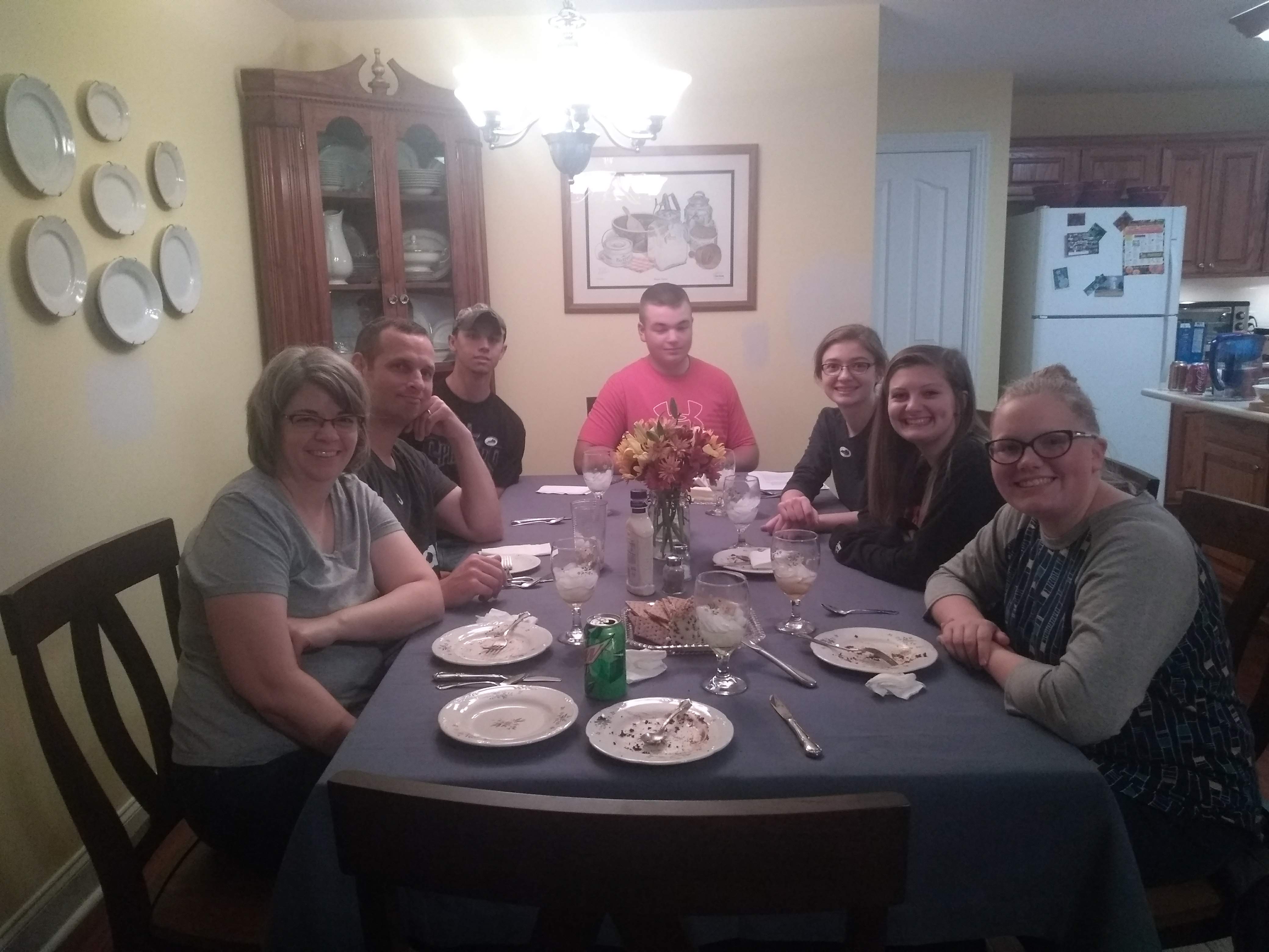 My Kentucky Kitchen Table project took place in Owensboro, Kentucky on November 16th. I am from Marshall County, however my dads entire family is from Owensboro. I invited both my grandparents, a boy from their church, my Aunt Robin, and then her daughter which is the youngest of all the cousins. My Pop (grandfather) is 77 years old and I have realized over the years that he is one of the most opinionated people I have had the privilege of knowing. Of all the people at the table, he had experienced the most and was eager to share his stories and thoughts that went along with the questions I asked. He is a retired principal from one of the high schools in the area. My Mimi (grandmother) is 75 years old and works part time at a packaging factory just to have something the keep her busy. She always likes to see the best in people and during this project she kept quiet during many of the controversial conversations we had. Aunt Robin is 51 years old and works as an OBGYN at one of the hospitals in Owensboro. She loves to get in heated discussions and it is rare if she ever does not have something to say. The boy from their church goes by Kaleb, he is 20 years old and is currently working full time at Menards while taking some classes at the local community college. He also remained quiet for most of the dinner unless I asked him a question directly. The last person at the table was my cousin, Karsen. She is 13 years old, in her second year of middle school, and brought a totally different view point to the table. Although she is young, she understood much of what we discussed and loved to give her thoughts any time she had any.