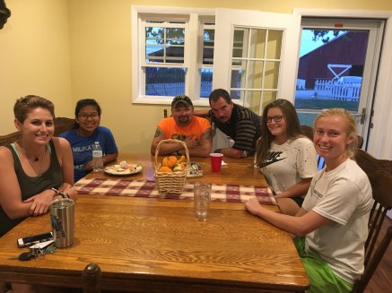 After our dinner, we all went out to our barn, and Kelsey and Angie helped me feed chickens and horses. Because I graduated before they entered high school, I did not know them very well, and they had been quieter during dinner. Feeding the animals gave me an opportunity to share some of my experiences growing up on a farm with them. This interaction seemed easier for them to relate with, and Angie told us about her experiences raising chickens when her family lived in Mexico.