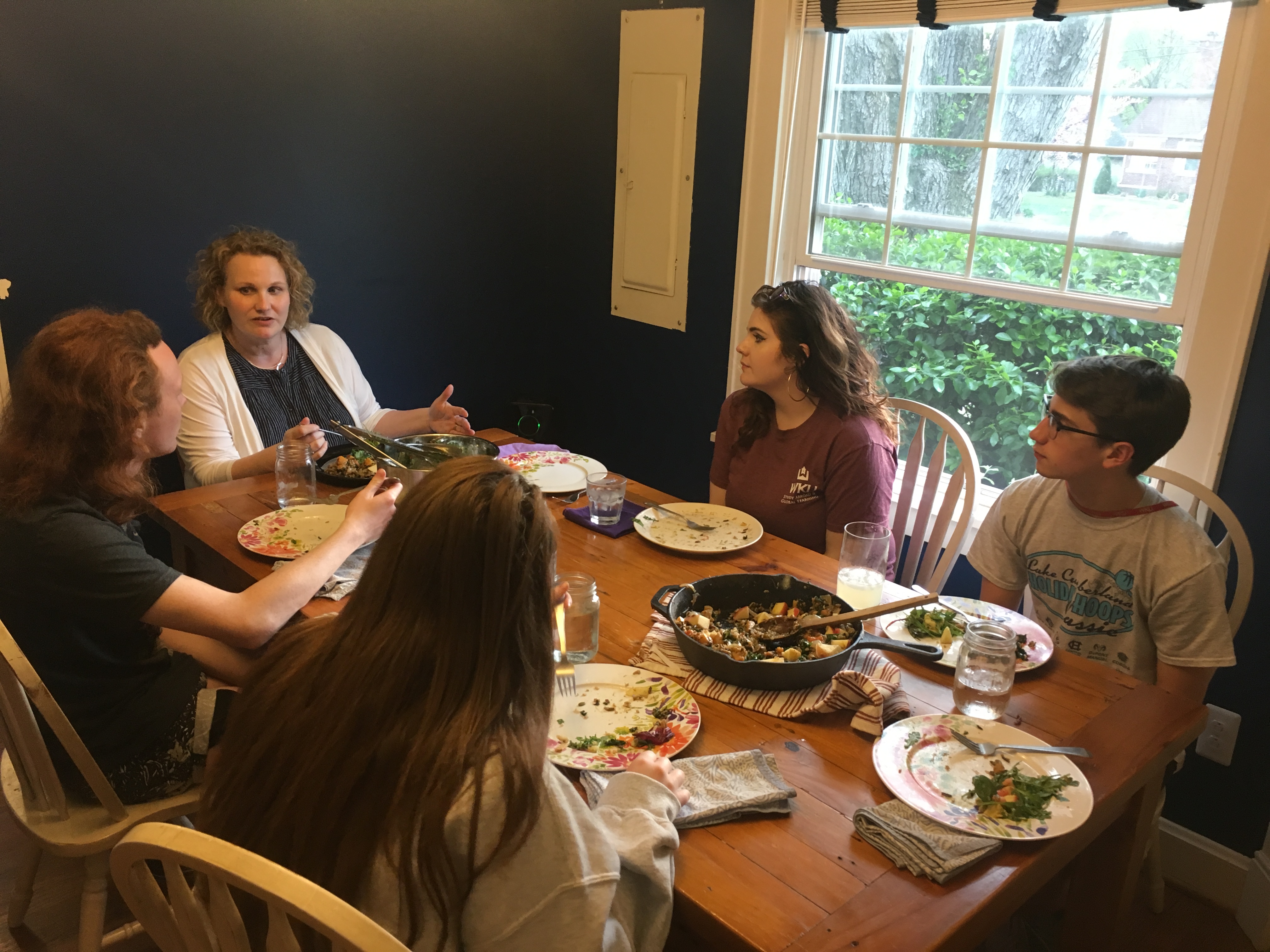We had a variety of food including salad with strawberries, potatoes, and chicken for some people, but eggs for Elizabeth and Amelia since they are vegetarian. Gina led the conversation with the question, “what does citizenship mean to everyone?” and Amelia clarified by saying “other than paying taxes, voting, and obeying laws”. Kate responded first by saying she believed citizenship was being a member of a community and having obligations for that community. She said this can be local or global. This was impactful because she will be traveling to the Philippines for a mission trip this summer and wants to do mission work for her career. We all agreed that all of us that being in a community and being a citizen means being cognizant and caring of the things going on in your community. Lauren also brought up the point that knowing the history of the place you live and observing how that affects your community today. We then got into talking about how our history in America has changed our country today. Now our country is more about embracing where you came from instead of adjusting to American culture. Tatum talked about how it is important to encourage people to embrace their heritage in order to work towards the betterment of our society. Elizabeth chimed in saying the reason she felt the need to be a good citizen was because she is a woman. We were a little confused, but she expanded on this to say that she feels as though being a woman in America is a privilege. She said this because many women in other countries do not have the same freedoms that we do. Therefore, because of the privilege she has from her country, she feels the obligation to be a good citizen. This is a unique way of looking at citizenship, but definitely brought a different perspective to the table. After that, Kate talked about how global citizenship means fighting for the rights of people who are oppressed. From there, Gina asked the question, “what do you think are the best parts of our world today?” Everyone hesitated for a little bit and admitted that all of the worst parts about our world came to our minds first. Some of the positive things we came up with were medical advances and furthering human rights. We also talked about how people are becoming more aware of the problems in our world, such as climate change and global warming. We moved into another topic on immigration and politics. Kate discussed the current political climate, specifically, how politicians use inflammatory language. Adding to that, we talked about how harsh and disrespectful people are to one another in our society, especially if it is something they are passionate about. We agreed that our country could use more civility. We connected this back to practicing citizenship and said that communities and members of communities should encourage listening to differing viewpoints. Overall, the conversation was engaging and I got to learn from other people’s perspectives on citizenship.