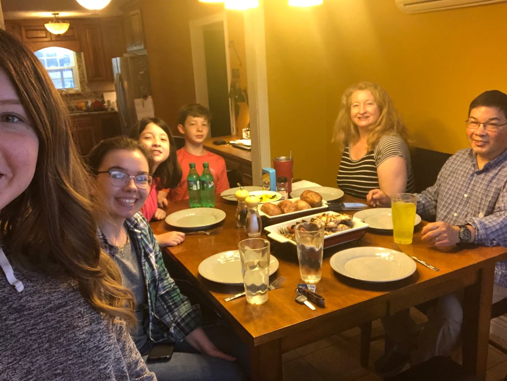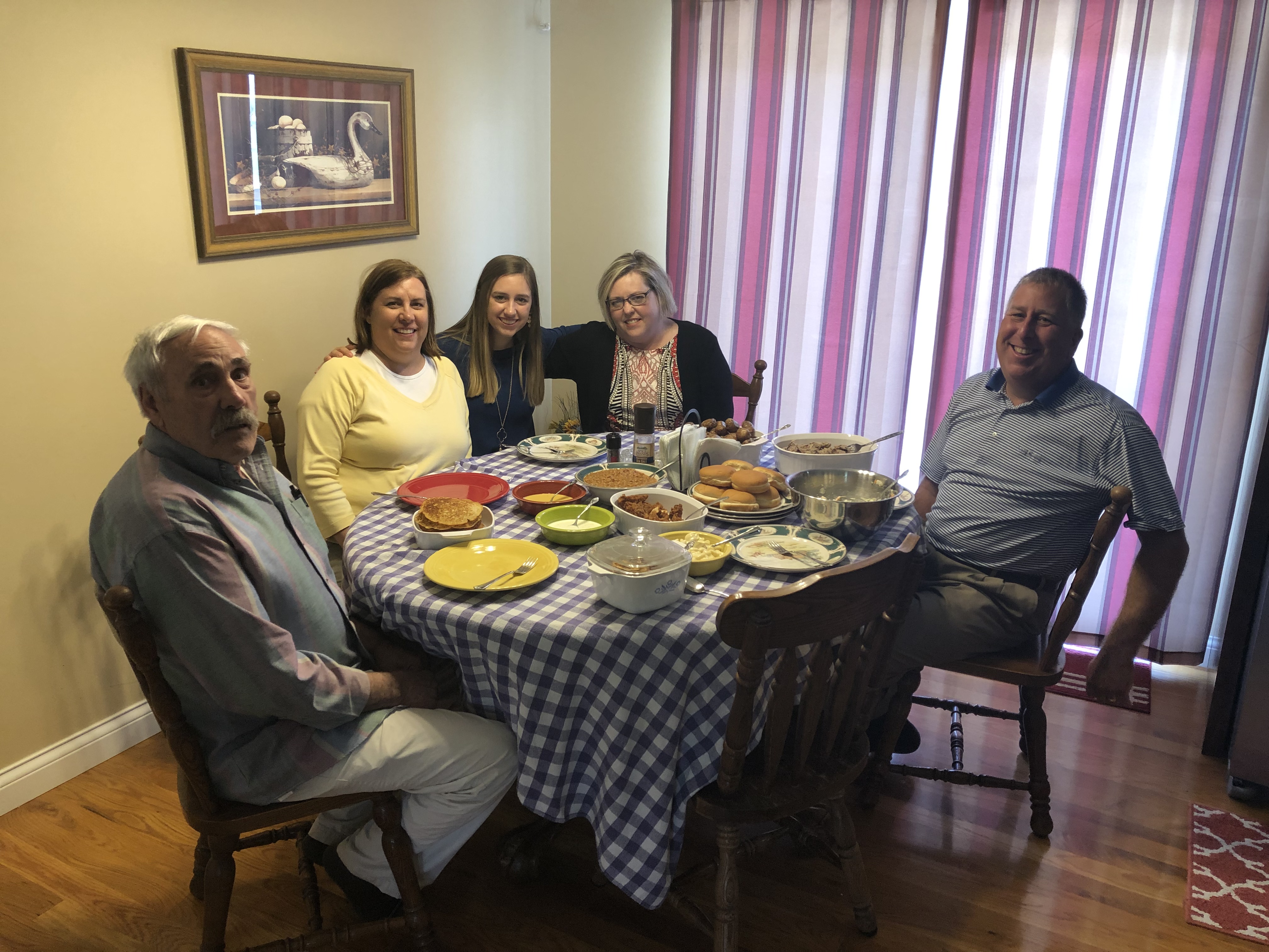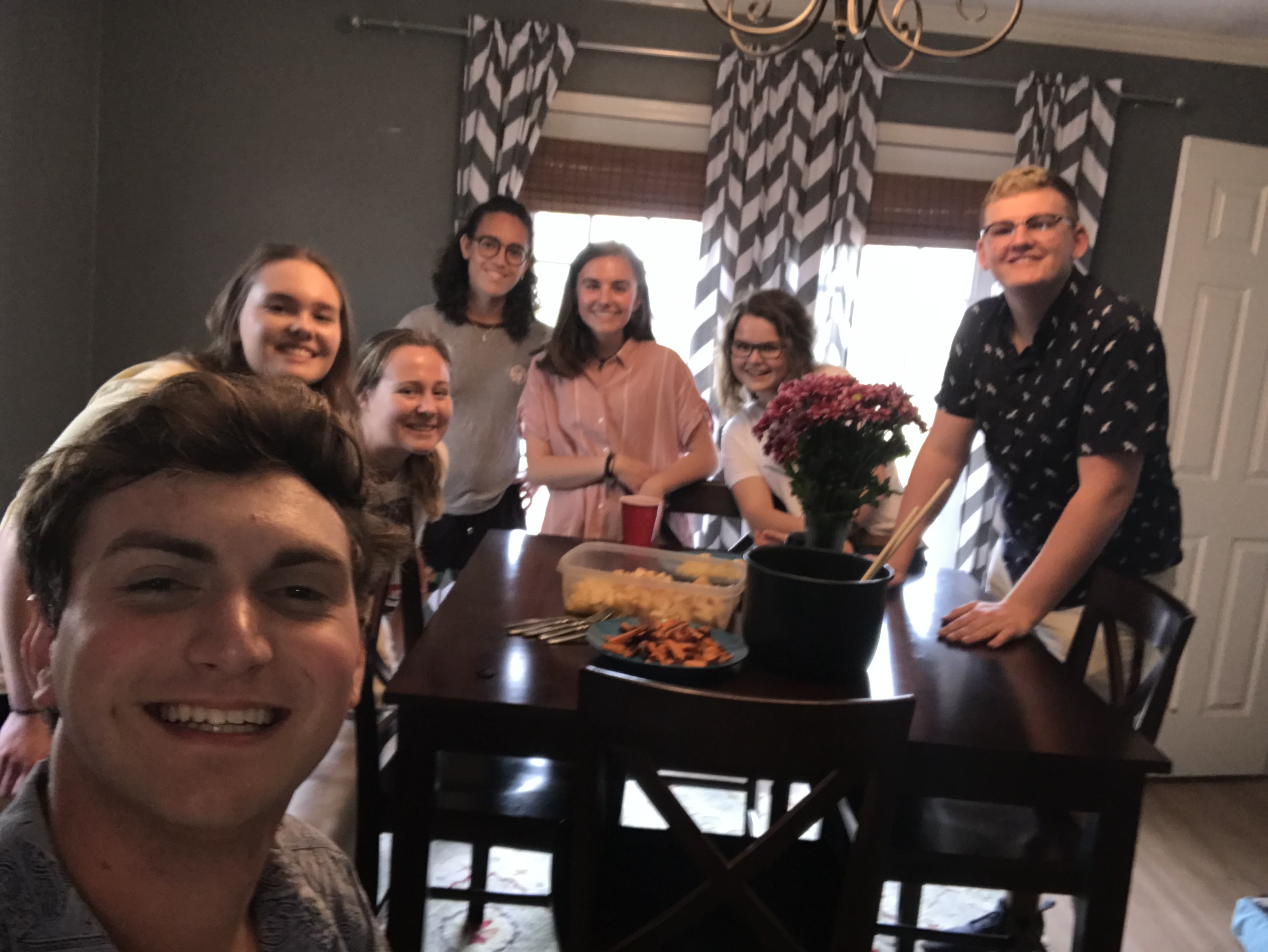 On April 11th, 2019, Bailey, Hayden and I hosted our Kentucky Kitchen Table Dinner in Bowling Green at my older sister’s house. We figured everyone was lacking on getting enough fruits and veggies (college kids). So, we prepared a vegetarian feast of salad, sweet potatoes, peppers, scrambled eggs, and fruit. Joining us was Laura, Logan, Amelia, and Erika. Laura is a sports psychology major from Segovia, Spain and plays on the WKU girls tennis team. Logan is very charismatic and knows how to laugh at himself. He was even kind enough to help me and Hayden prepare dinner. Amelia is a new friend of mine. She is kind-hearted and a great listener. Amelia is majoring in social work- how perfect! I had never met Erika before this dinner, but it turns out she had my mom as a teacher during high school for two years and had heard a lot about me. I’m sure she wanted to run out of the house after realizing I was the crazy kid my mom always talked about, but she remained very polite. Erika is a political science and economics double major. She plans to be a judge one day.